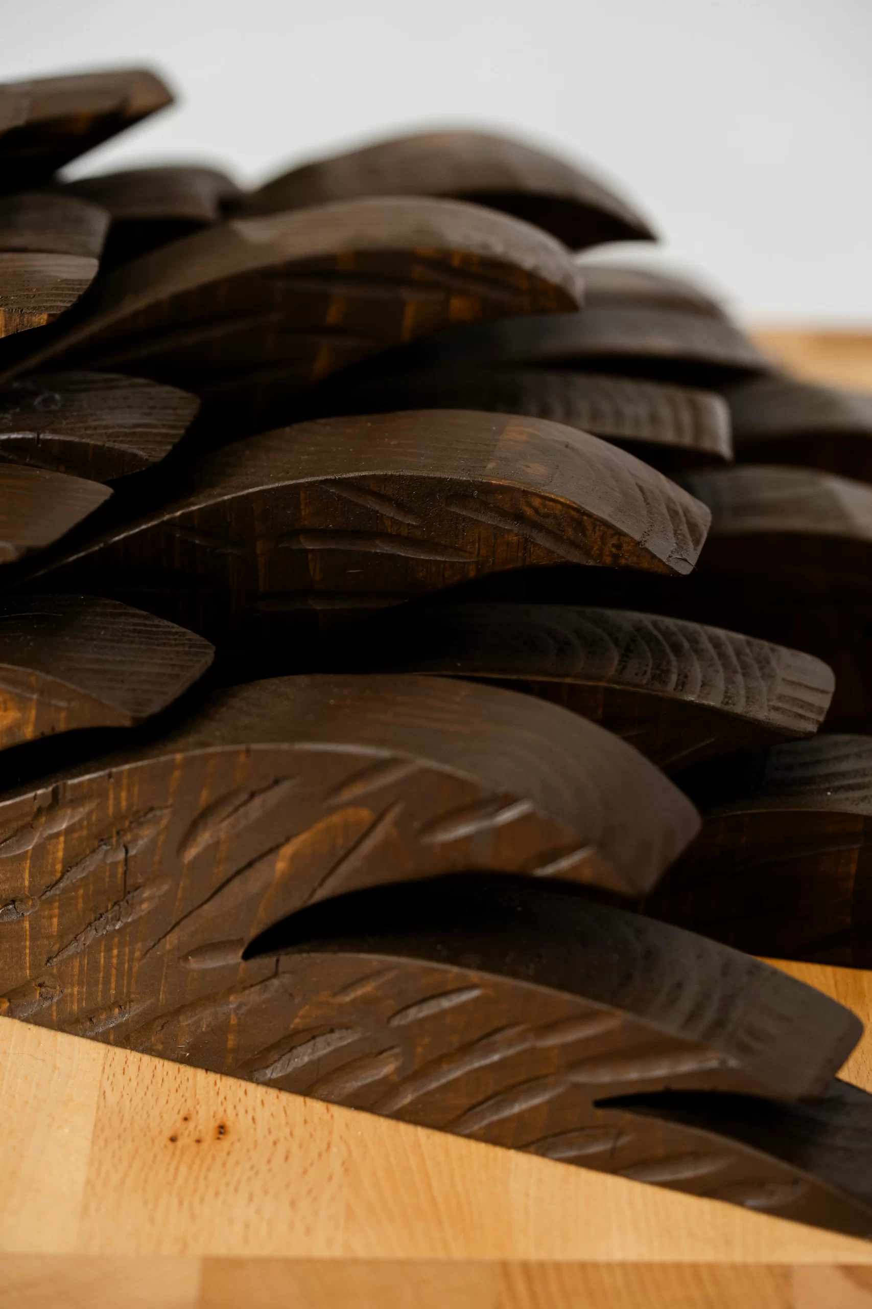 Масивното дърво и суровият дизайн създават усещане за нещо истинско, неподправено и силно.